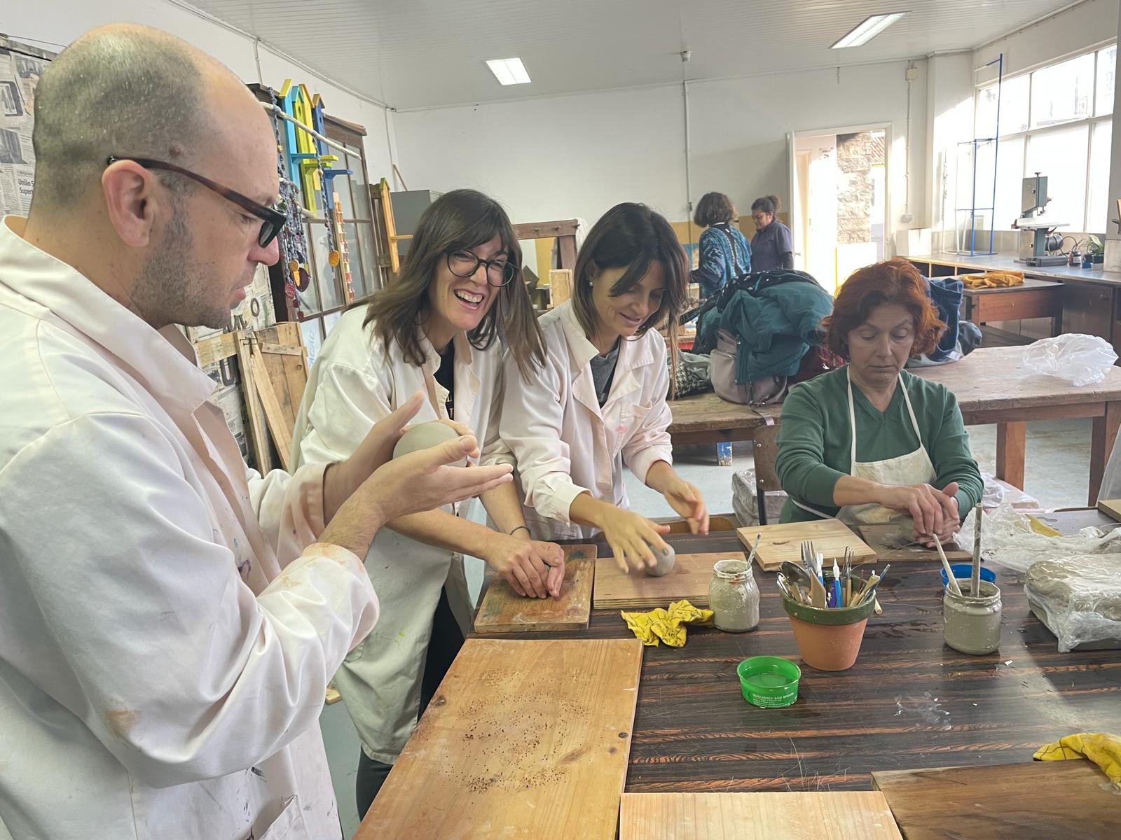 Os professores Alexandre, Sílvia e Cristina aproveitaram cada momento da sua estadia em São Miguel. Cumpriram interessante um programa de jobshadowing na ESAQ assistindo e participando em aulas de disciplinas muito diversificadas, do Teatro à Literatura portuguesa, passando pelo Inglês e pelas Artes visuais e olaria. Foi uma semana plena e muito interessante para todos, alunos e professores de cá e de lá. Nestas aulas, os observadores, além de o fazerem, tomaram também parte das atividades que as turmas estavam a desenvolver, integrando-se com grande curiosidade e interesse nas tarefas das turmas.